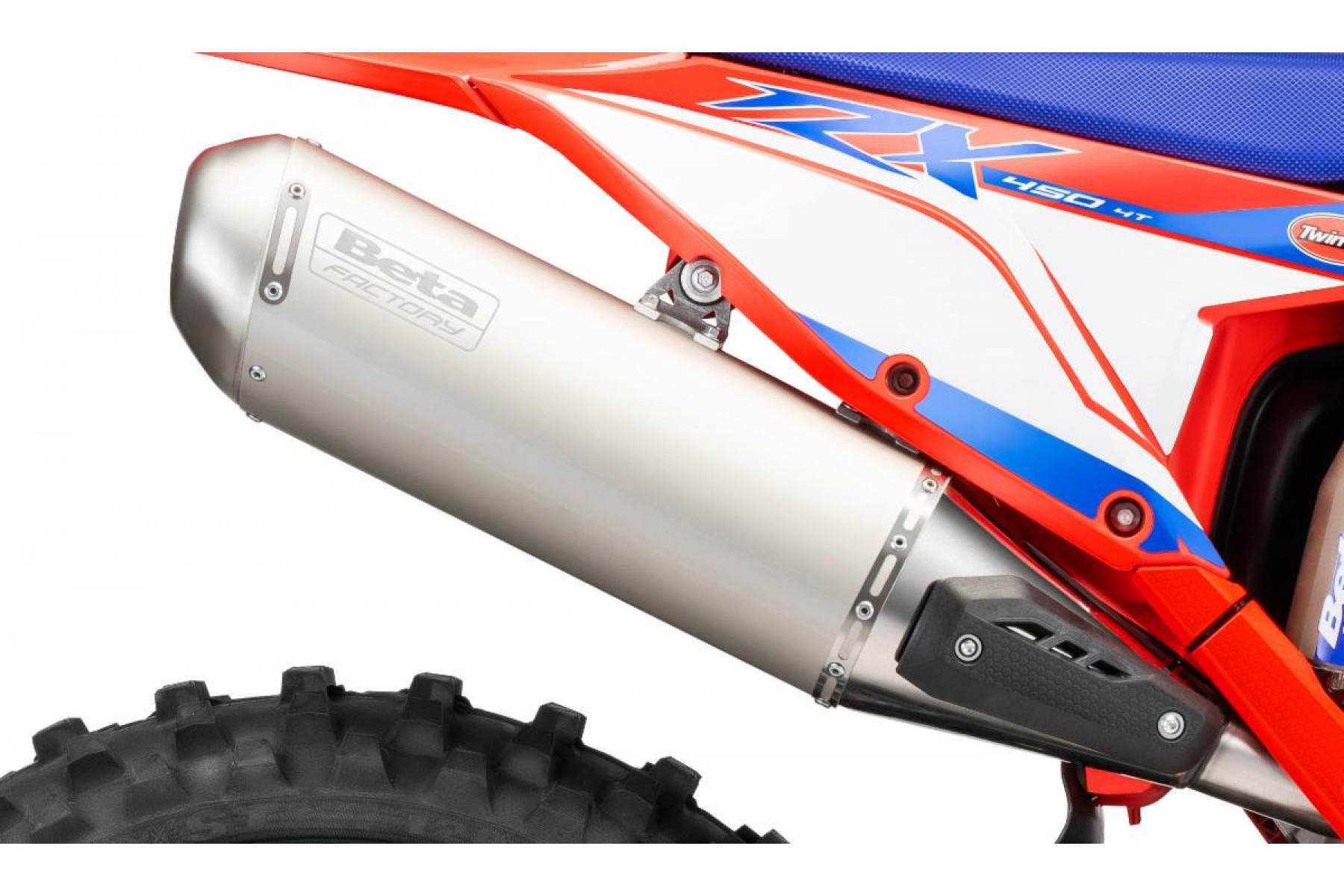 Rear sub-frame and filter box: The RX 450 has a new aluminium rear sub-frame which provides rigidity to the bike despite its light weight, providing the strength needed for demanding needs of motocross. This new component is perfectly integrated with the new filter box, never previously used on Beta models. The new filter box and sleeves, combined with the new 46 mm throttle body, provide a significantly different air flow than that required by an enduro bike, creating optimum air flow to keep up with the performance of the new engine. Access to the filter remains on the left side of the bike, and is extremely easy and intuitive, as well as being tool free.