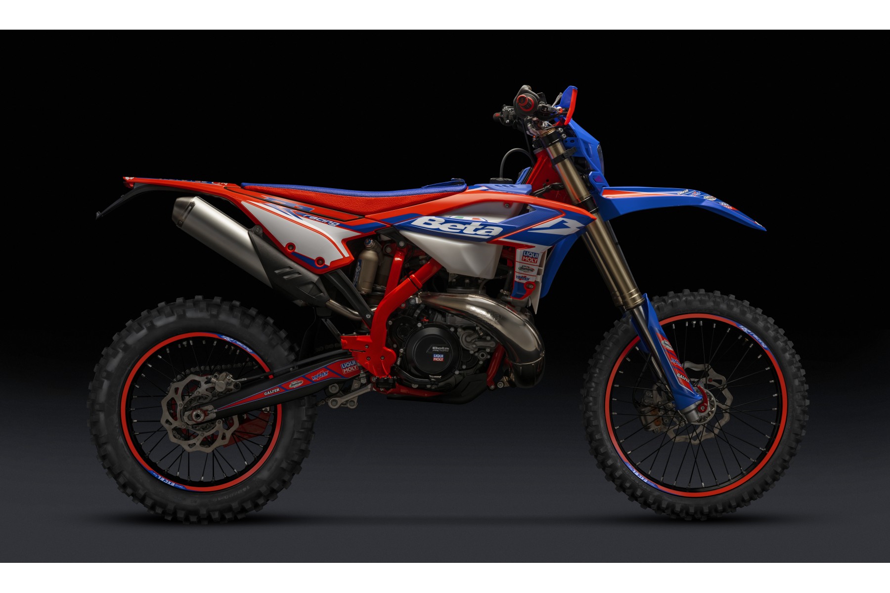 For the models of the RR Racing 2Str MY 2024 family, Beta has decided to stick with its choice of doing away with an automatic mixer, so that its Racing bikes continue to set benchmarks for lightness and, as a result, agility. The RR Racing two-stroke bikes must therefore be fueled with oil/petrol pre-mix – a characteristic accentuating the thoroughbred racing nature of this version.