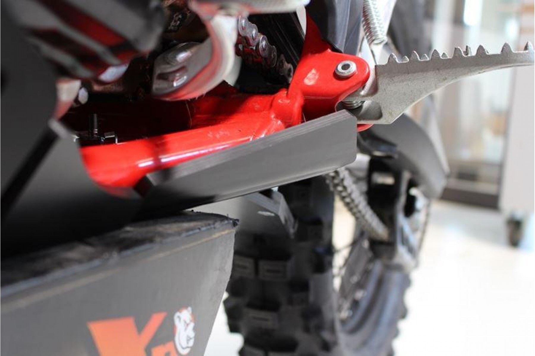 New design is dedicated to EXTREME Enduro racing, New design has added coverage to protect the frame's tubing and full linkage protection. Made from 8mm thick HDPE Polyethylene which is 40% lighter than aluminium and this helps to reduce vibration and "Rattle" The AXP Racing process allow to absorb heavy impact better than basic injected plates.